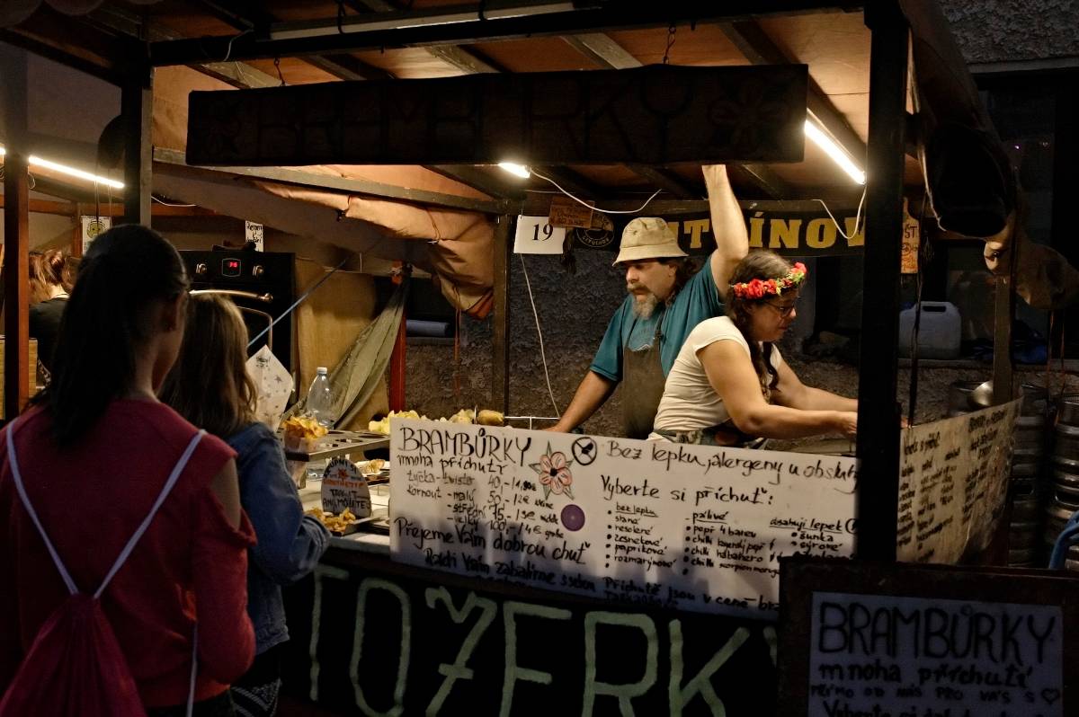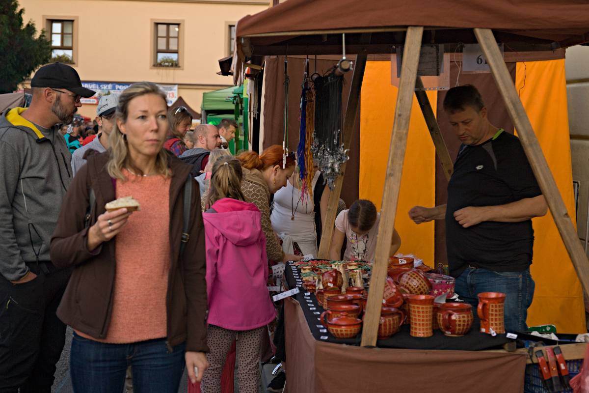 Nechyběly ani nabídky vína, burčáku nebo medoviny. Mezi kostelem a školou pak vyrostlo provizorní pódium, na kterém se vystřídali nejrůznější umělci, kteří přispěli k příjemné atmosféře.