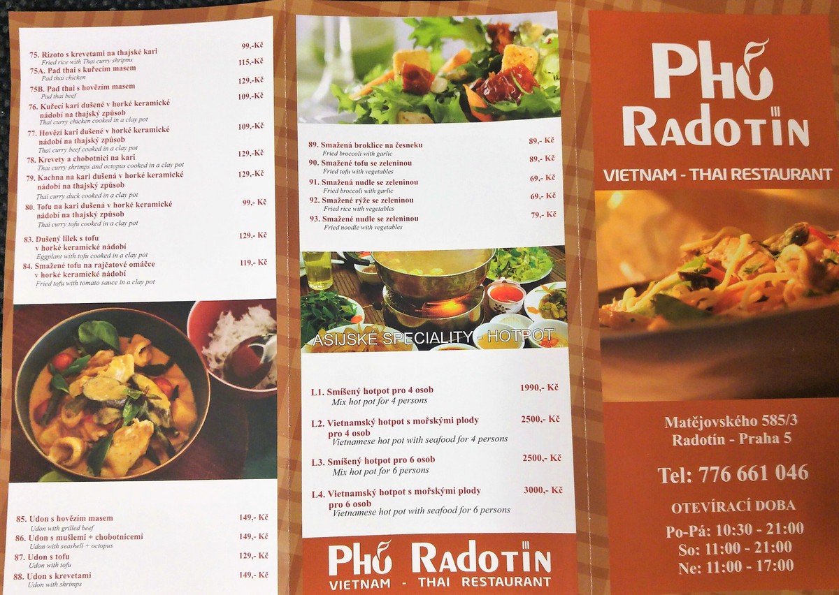 V pondělí 28.11. se v ulici Matějovského otevřela asijská restaurace Pho Radotín. V její nabídce jsou pokrmy vietnamské a také thajské kuchyně. Z předkrmů nechybí jarní rýžové závitky či grilované krevety, nudlové polévky si můžete vybrat s krevetami, kuřecím či hovězím masem, ale třeba i s tamarínem či tofu.