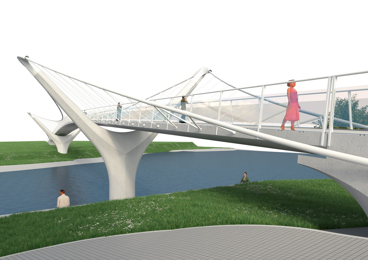 Zatímco u dosluhujícího mostu zvítězil návrh připomínající plachtu lodě s vysokým sloupem umístěným na zbraslavské straně, který se v poslední fázi projektu snižoval tak, aby nebyl vyšší než radotínský kostel, nová lávka bude úplně jiná.